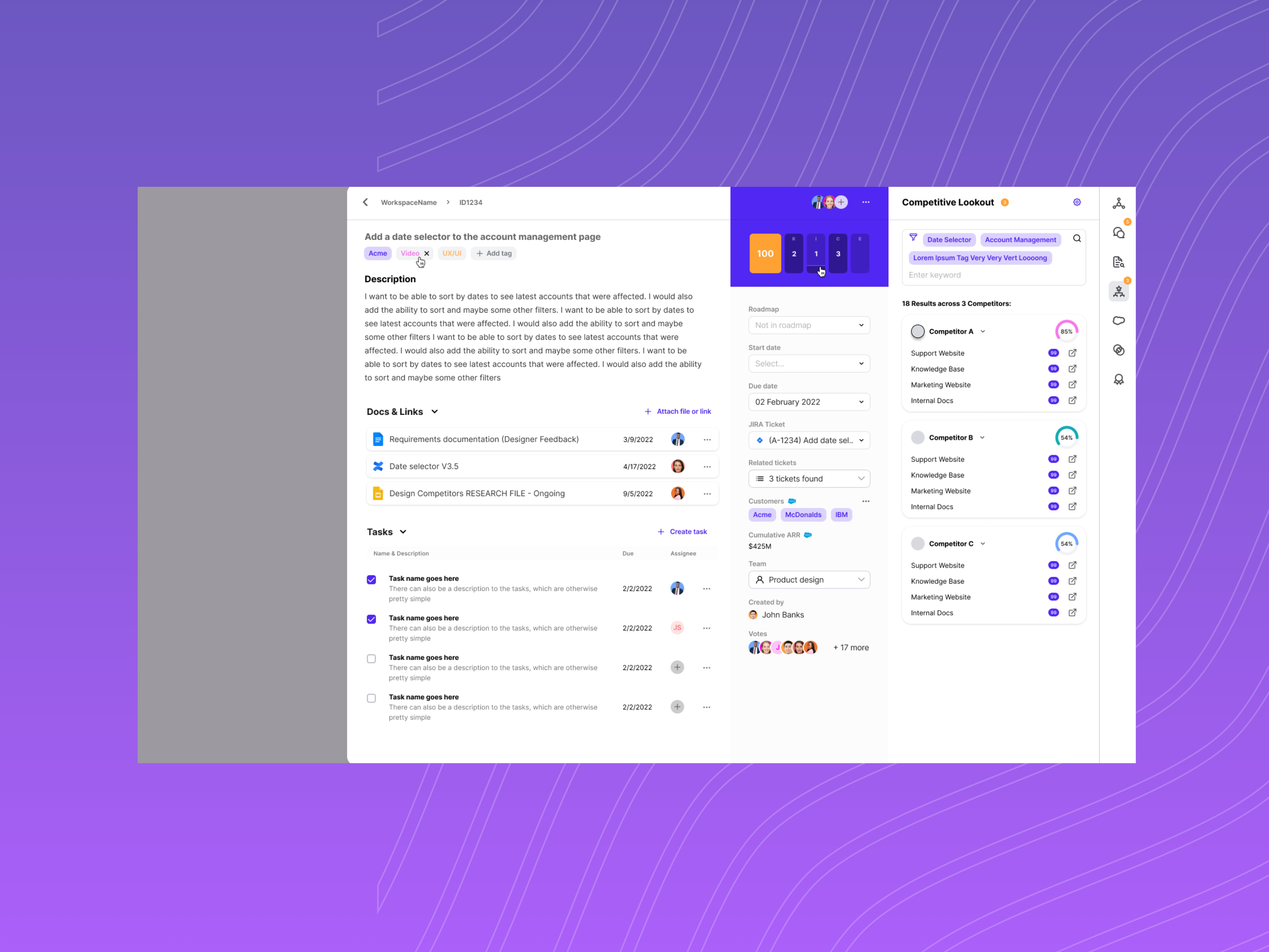 Any AI can generate a PRD if you ask it to. But we learned that producing content with the context of the user is what makes generative AI useful. We designed the tools as individual pieces, that are powered by the data points (docs, data) provided by the user. This way, any content generated has more relevance and more personal to the creators.